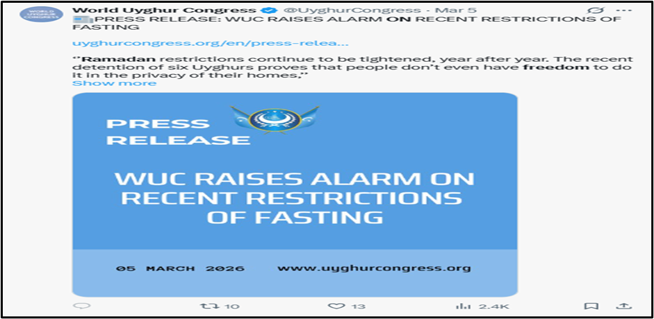 A recent report has drawn global attention to the situation of Uyghur Muslims in Xinjiang during the holy month of Ramadan. According to International Business Times, more than 500 Uyghurs were detained in the Hotan area for activities linked to religious observance, including fasting, gathering for prayer or possessing religious materials. Security measures reportedly intensified around mosques and Uyghur neighbourhoods, with residents subjected to inspections and heightened surveillance. Observers and rights groups described the situation as a serious restriction on religious freedom, particularly during Ramadan, a period traditionally devoted to prayer, charity and reflection. Human rights organizations argue that these measures are part of broader state policies targeting religious practices and cultural identity among Uyghur Muslims, reinforcing concerns about long-standing surveillance and detention programs in the region.